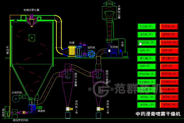 中藥浸膏專(zhuān)用噴霧干燥機是吸收國外技術(shù)開(kāi)發(fā)的適用于熔點(diǎn)低、含糖高的中藥產(chǎn)品的干燥設備.該裝置根據干燥產(chǎn)品特點(diǎn)和性質(zhì)確定噴霧干燥的工藝條件,自動(dòng)化程度高,操作方便,符合GMP要求。該設備的成功開(kāi)發(fā),解決了多年來(lái)許多熔點(diǎn)低,含糖高的中藥產(chǎn)品不能用噴霧干燥的技術(shù)難點(diǎn),也是對噴霧干燥在中藥制藥工業(yè)中的應用技術(shù)研究的新發(fā)展。