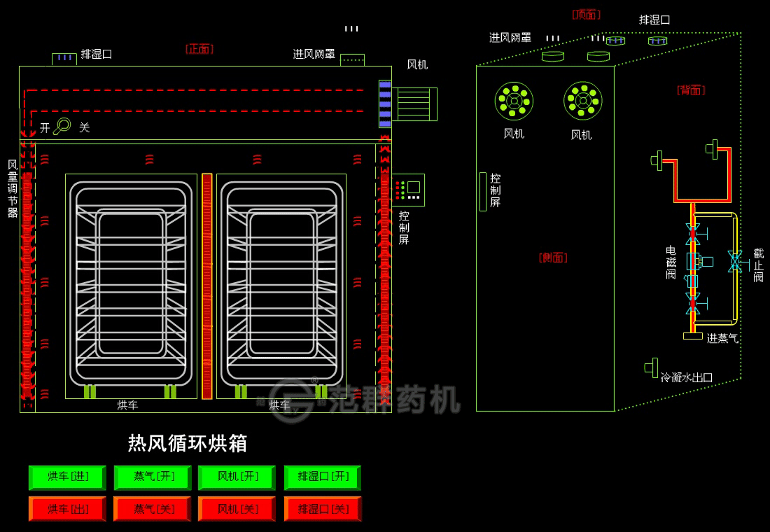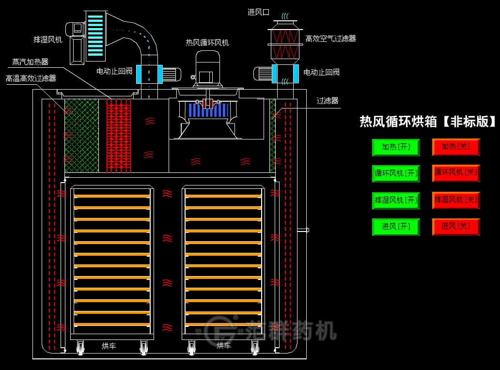 產(chǎn)品概述:熱風(fēng)循環(huán)烘箱適用于制藥、化工、食品、農副產(chǎn)品、水產(chǎn)品、輕工、重工等行業(yè)物料及產(chǎn)品的加熱固化、干燥脫水。如原料藥、中藥、中藥飲片、浸膏、粉劑、顆粒、沖劑、水丸、包裝瓶、顏料、染料、脫水蔬菜、瓜果干、香腸、塑料樹(shù)脂、電器元件、烘漆等。